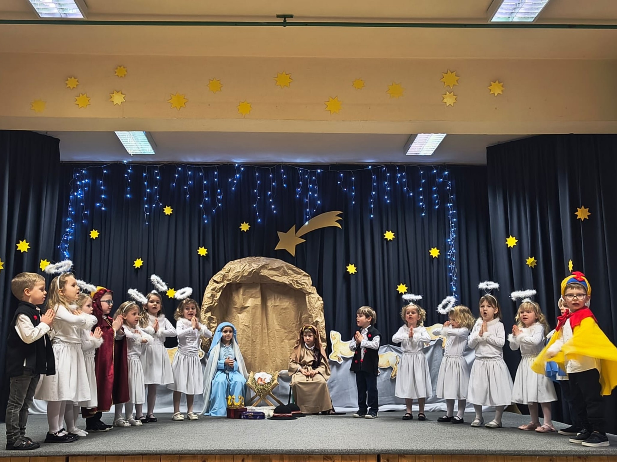 W bardzo rozśpiewanym programie przedszkolaki zaprezentowały historię narodzenia Pana Jezusa. Wcieliły się w postaci Marii i Józefa, Trzech Króli, Aniołków i Pasterzy. Dumnie i odważnie śpiewały piękne piosenki i pastorałki, tańczyły tańce i recytowały swoje kwestie.
