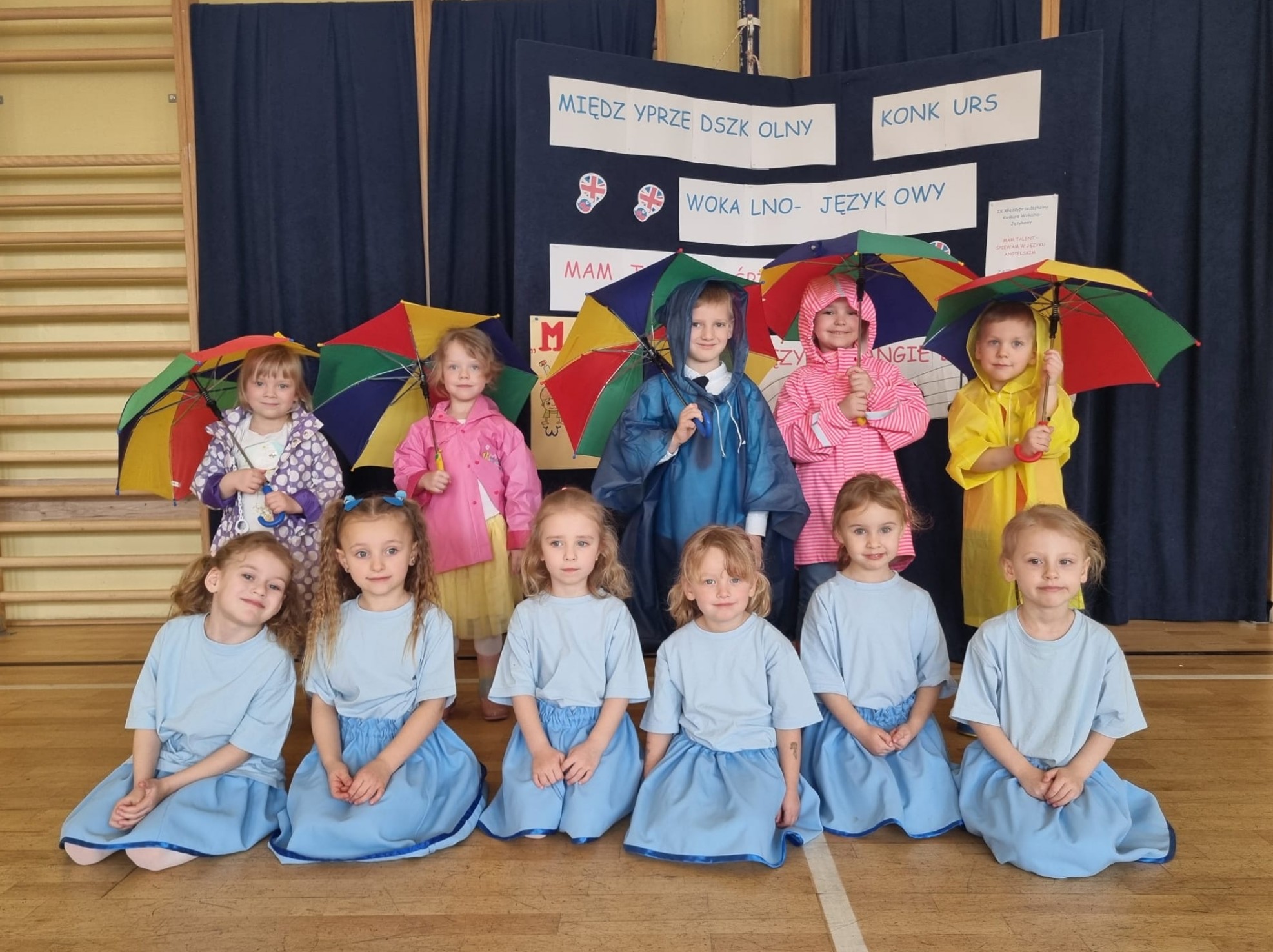 W tym roku Przedszkole nr 64 reprezentowały nasza grupa oraz oddział V. Przedszkolaki z grupy III wystąpiły w jedenastoosobowym zespole z piosenką „Rain, rain go away”, natomiast grupa starszaków zaprezentowała utwór „How’s the weather”. Podczas obu występów dzieci samodzielnie śpiewały w języku angielskim, ilustrowały ruchem treści piosenek, na atrakcyjność prezentacji wpłynęły również rekwizyty i stroje. Jury konkursu oceniało znajomość tekstu wykonywanej piosenki, dobór repertuaru, poprawność muzyczną, poprawność językową oraz ogólne wrażenie artystyczne.