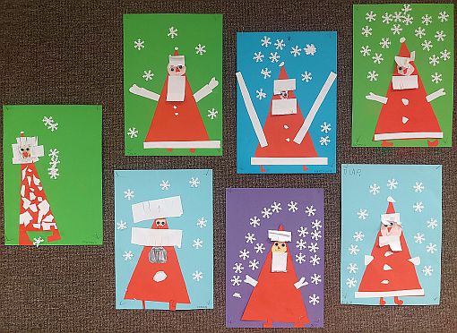 stemplowanie, odrysowanie według szablonu, wycinanie, rysowanie pastelami