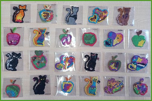 wyklejanie plasteliną, rysowanie pastelami